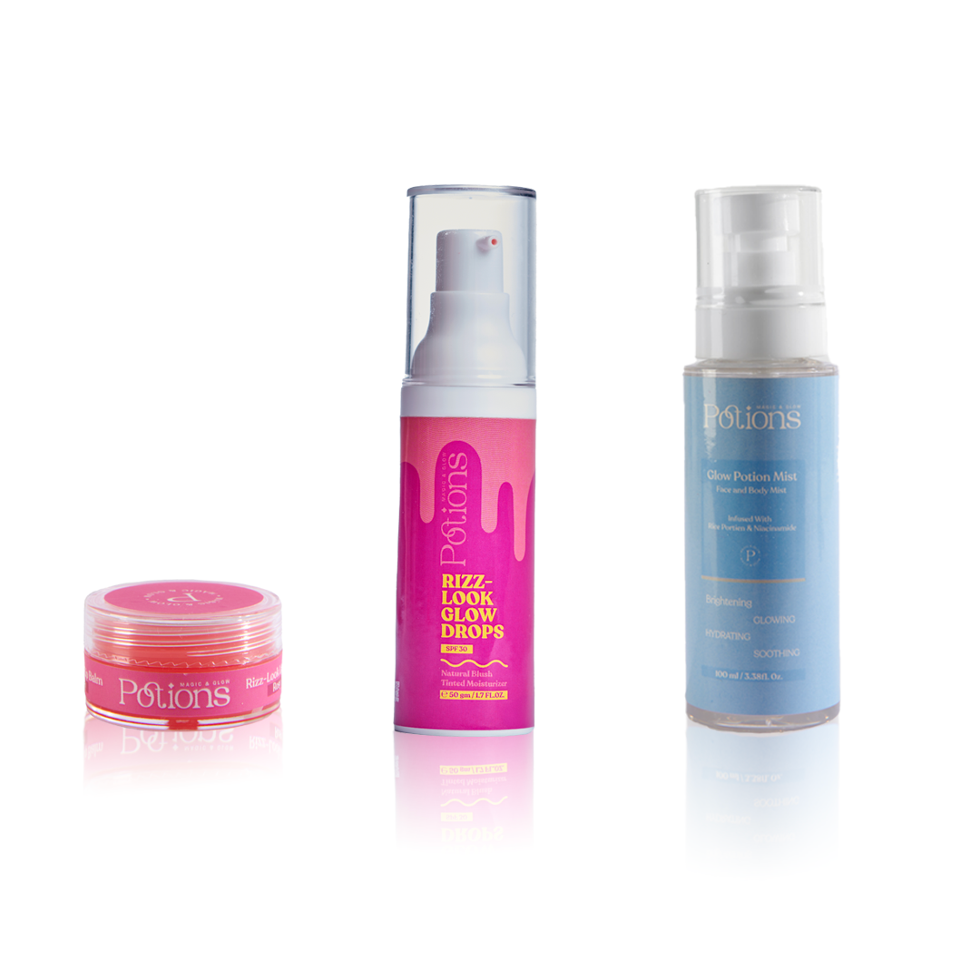 - Glow Potion Mist A refreshing, antioxidant-rich face & body mist that locks in moisture and gives your skin a soft, dewy finish—all day long.